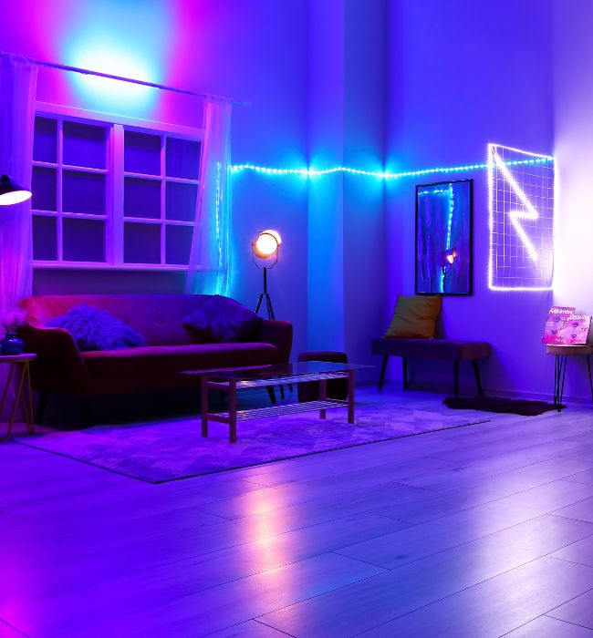 Under Furniture: Place LED strips under sofas or coffee tables for a futuristic feel.