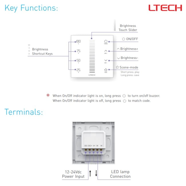 Wired Touch Panel LED Strip Dimmer, 12V – 24V