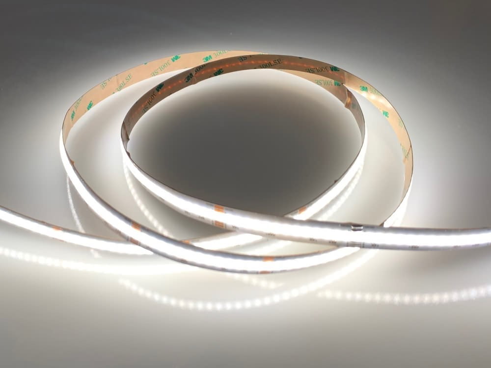 Available in lengths up to 10m and cuttable every 33.3mm, 24V RGBW COB LED strip. It has the same energy consumption and light output as our 12V/24V RGB strip but also comes with a designated white LED.