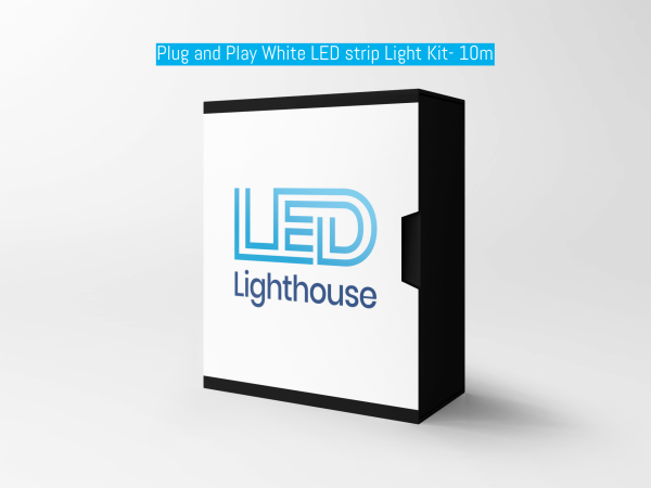 You will receive 10m of our 5 watt per metre LED strip light, a 72w plug-in LED power supply and our remote control LED strip dimmer with receiver. We also add 3 corner connectors in the kit, free of charge!