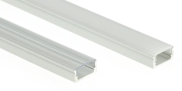Diffuser covers are manufactured from polycarbonate for strength and durability. Available in Clear or Opaque, suitable for Shallow Led Profiles. The clear diffuser cover is to the left in the main product image, and the Opaque cover is to the right. The Opaque cover reduces bright spots of light to give a more even illumination of the diffuser cover.